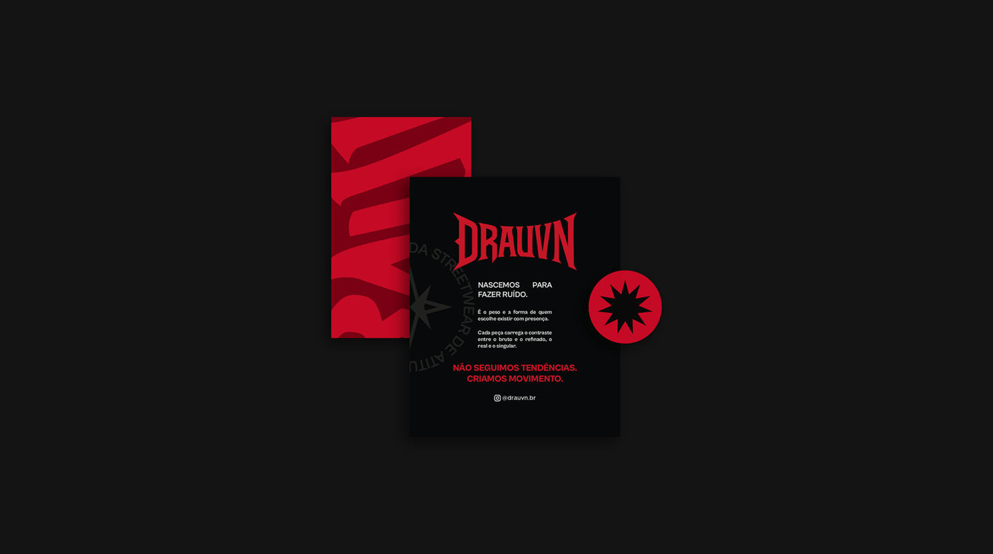 O desafio deste projeto foi construir uma identidade visual que equilibrasse estratégia e expressão. A partir da essência da marca e de seu público, desenvolvi um sistema visual que traduz seus pilares: atitude, propósito e autenticidade. Cada escolha, das formas às cores, carrega a estética crua e simbólica da Drauvn, inspirada no underground e em narrativas que misturam arte, resistência e significado.
